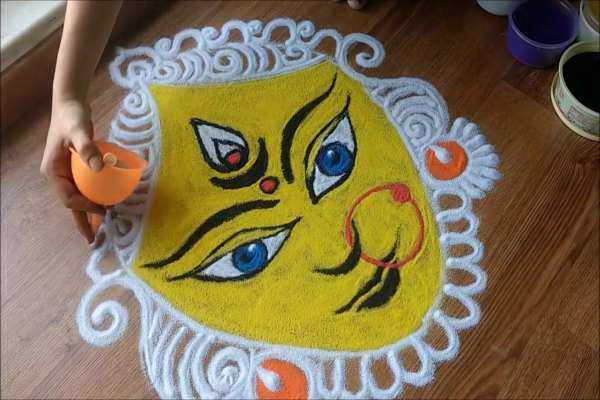 Here’s a Video of Maa Durga Colourful Rangoli: